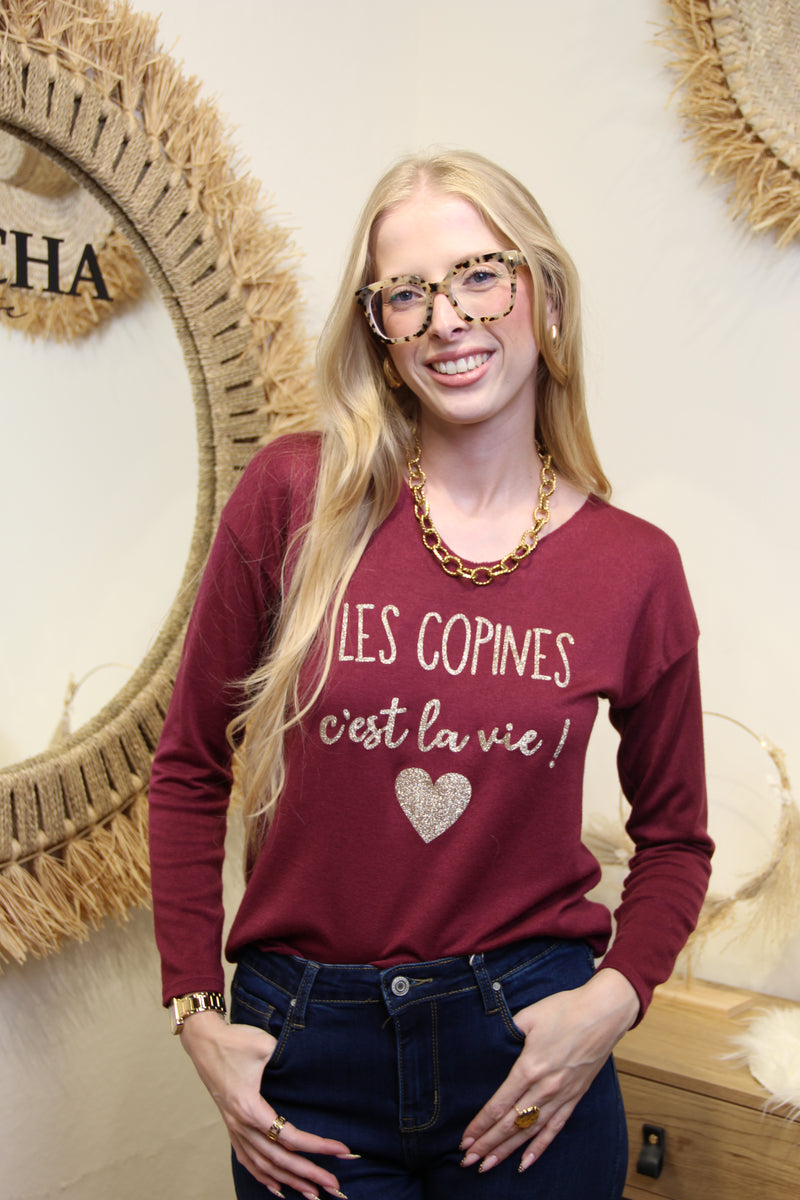 Robe tunique “Rosalie” en dentelle bohème – Rouge passion