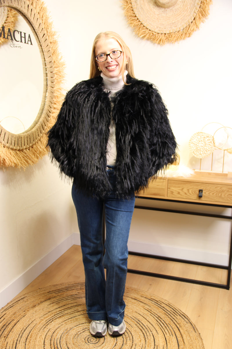 Veste Gina – Fausse Fourrure Noire Longue