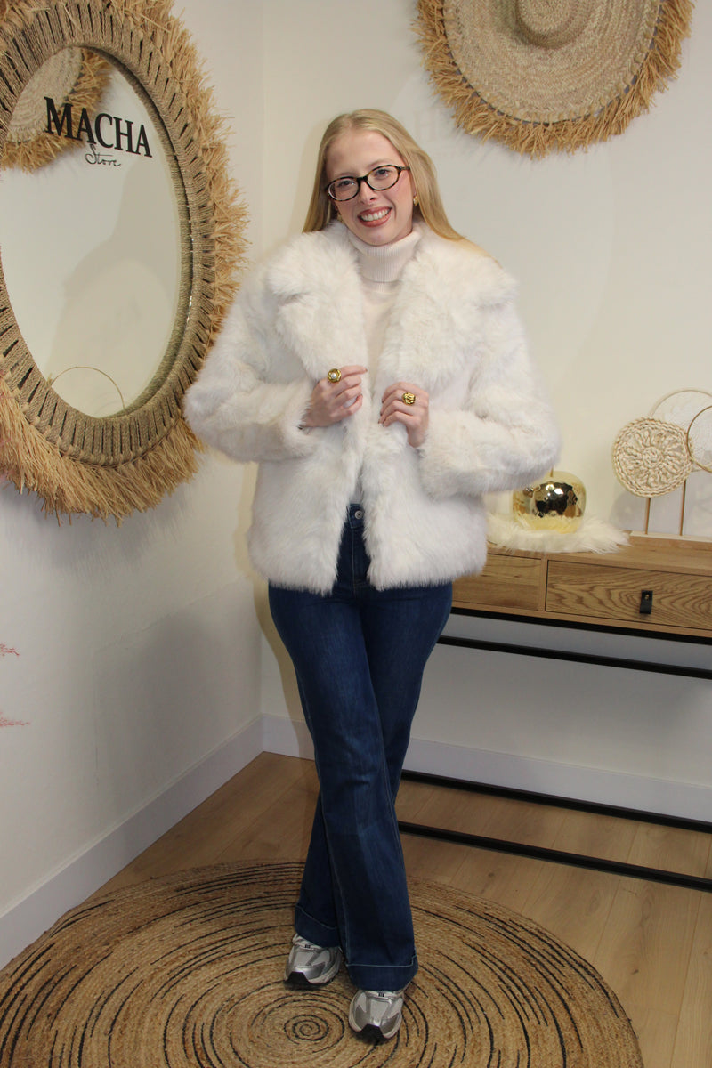 Veste Gina – Fausse Fourrure Blanche Longue