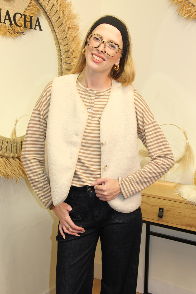Gilet Mika – Sans Manches en Fausse Fourrure Beige