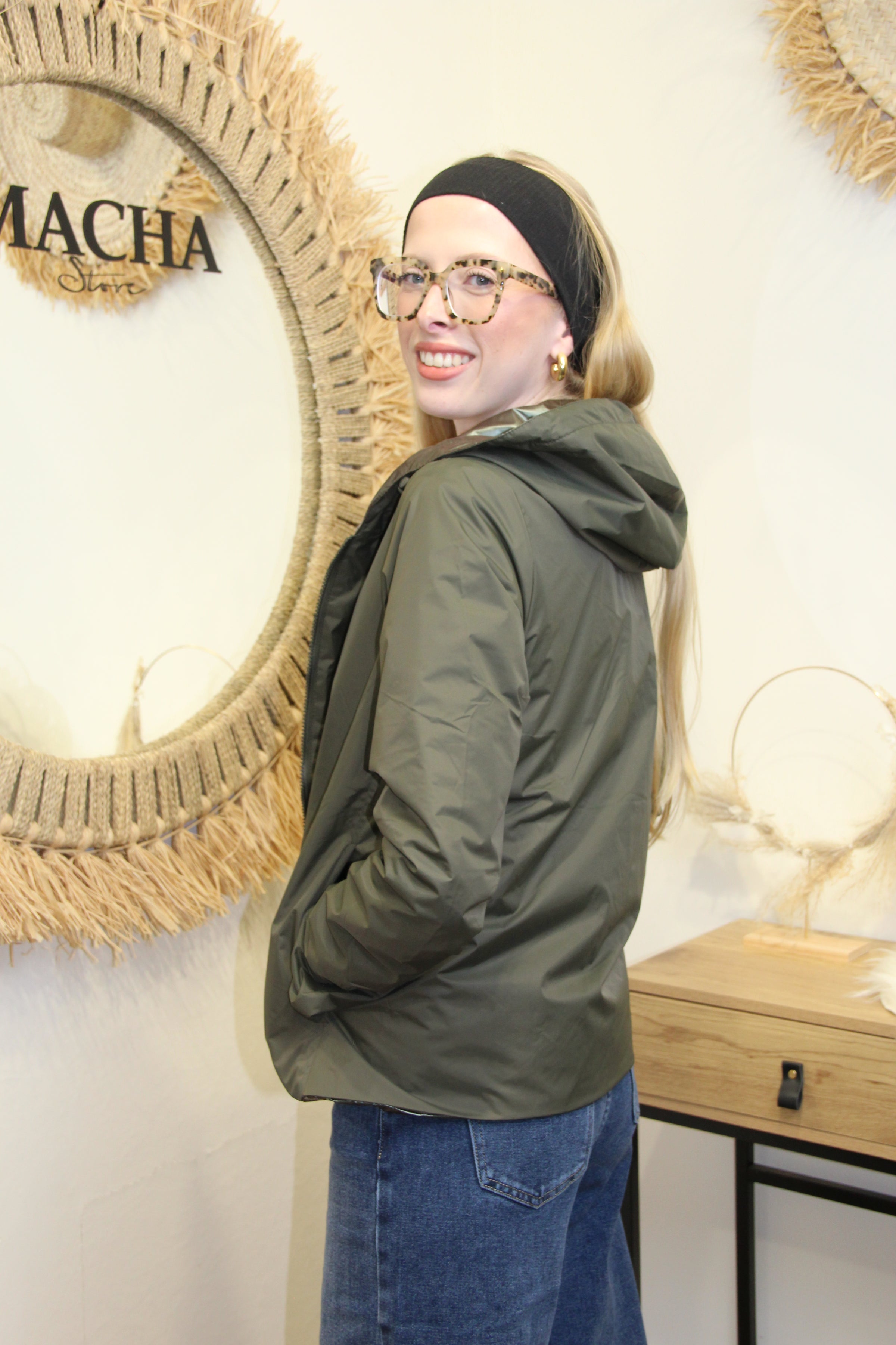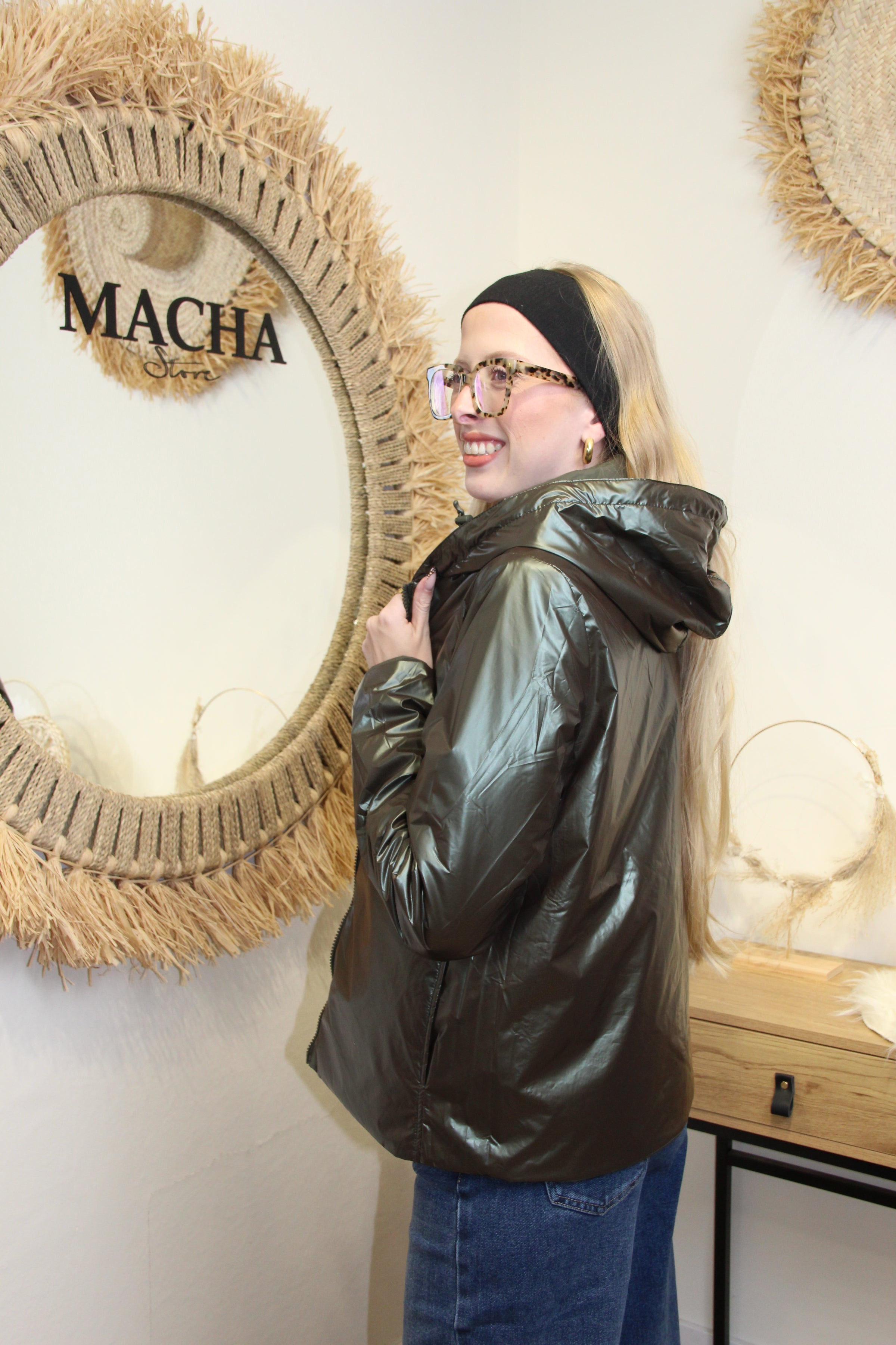 Veste Alya – Réversible Kaki Matte et Métallique
