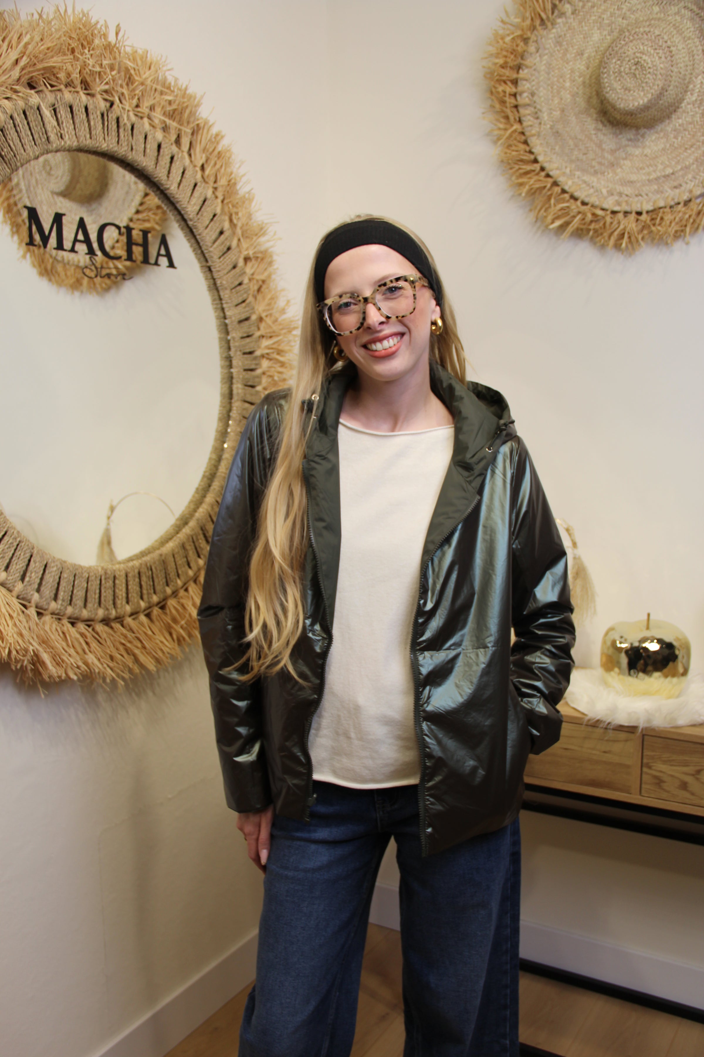 La veste Alya est une pièce astucieuse et ultra-pratique. Réversible, elle se porte d’un côté en kaki matte pour un look urbain, ou en kaki métallique pour une allure plus douce. Son tissu léger et déperlant en fait l’alliée parfaite des demi-saisons.