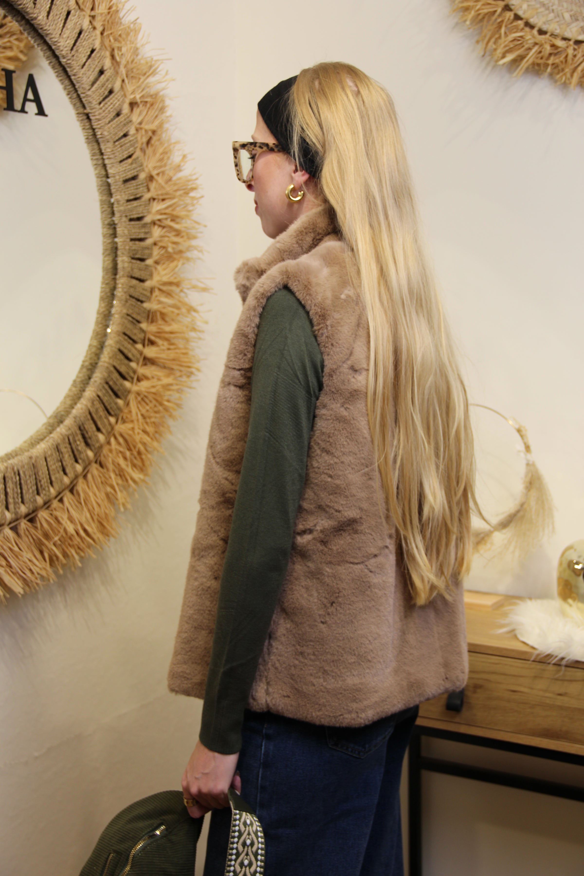 Gilet Mika – Sans Manches en Fausse Fourrure Beige