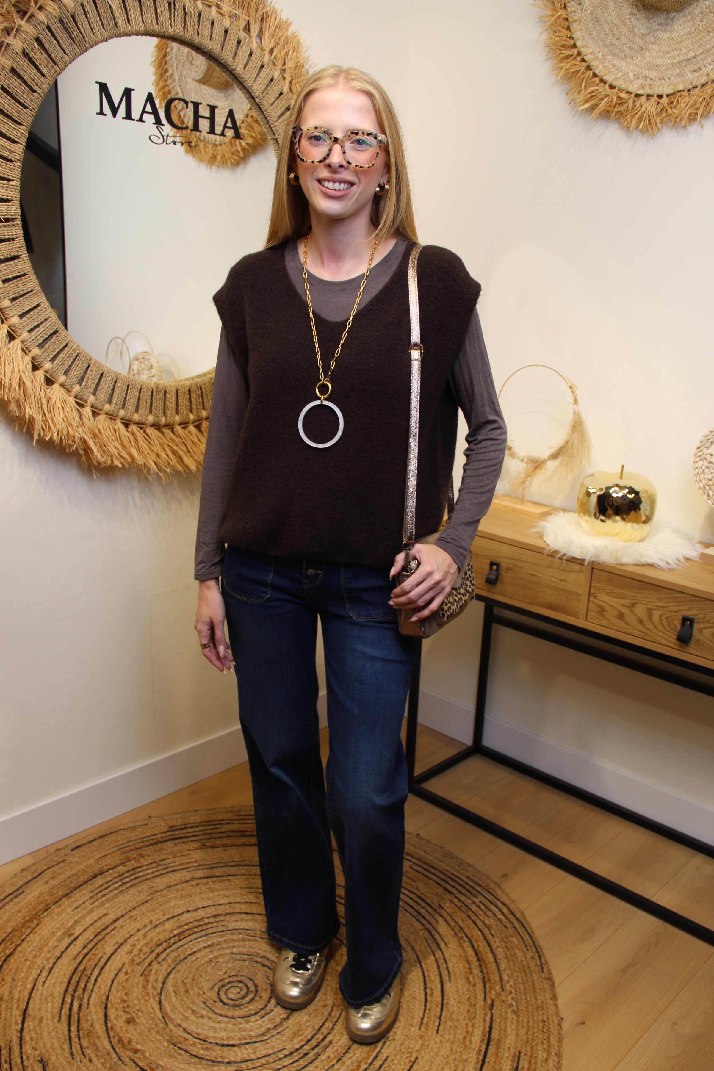 Le pull sans manches Maëva se décline ici dans une teinte chocolat foncé, chaleureuse et facile à assortir. Son col en V et sa maille moelleuse lui confèrent un style à la fois chic et cosy, idéal pour la superposition sur un t-shirt, une chemise ou un sous-pull fin.