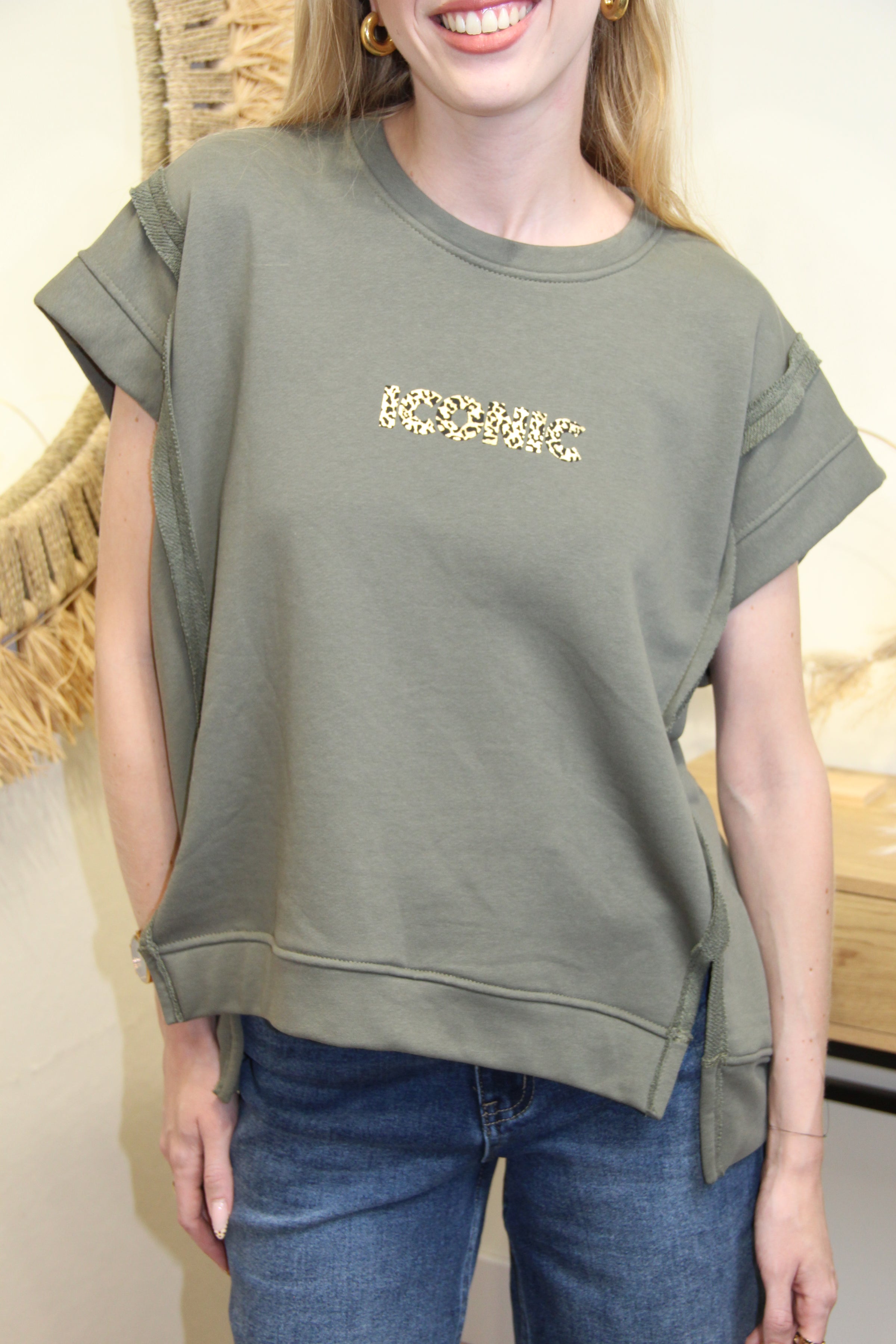 Le sweat Cosmic casse les codes du classique avec ses manches volontairement coupées et son look oversized ultra tendance. Un imprimé léopard doré "COSMIC" vient rehausser la pièce pour un style affirmé et décontracté.